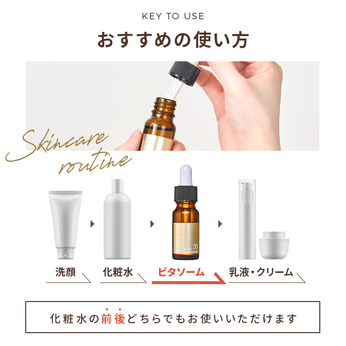 どちらのタイミングでもかまいません。お使いのスキンケアと組み合わせてご自身の好きなタイミングで取り入れられます。