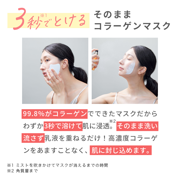 もし不快に感じる場合は、化粧水や乳液によって残ったコラーゲン※1を 馴染ませると、ベタつきが軽減されます。